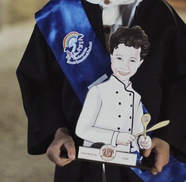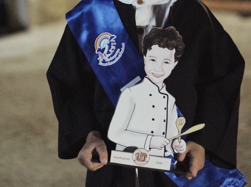 في حفل التخرج منحتنا المدرسة مجسمات خشبية مطبوعة بتصاميم كرتونية للطالب مع الهواية أو الوظيفة المستقبلية التي يرغب بأن يصبح عليها الطفل ومن بين جموع المهندسين والأطباء القادمين اختار طفلي بثقة أن يصير "طاهِ - شيف" , كان الوحيد الذي يرغب بذلك من بين قرابة مائة طفل, وعندما سألته عن السبب قال لي أن أحلامه وطوحاته تبدلت وتتبدل مع الأيام , فقد كان في السابق يرغب بأن يكون فناناً تشكيلياً لربما متأثراً بي, ثم لاحقاً عازف بيانو ماهر وشهير بقصة ما ملهمة, الآن لازال يمتلك الغبة لممارسة كل ما سبق لكنه يفضل التخصص في صنع الطعام, يخبرني أن صناعة العجين والأطباق الشهية أمر ممتع ومفيد, ثم قال لي "بشوفك لما تطبخي بتكوني بتغني ومبسوطة مع قلبك " , يبدو أنه لاحظ وأحب مدى اندماجي في الطبخ, بالفعل عندما أُحضر الطعام أكون مبتهجة وفرحة . أخبرني ختاماً أنه ربما سيغير أحلامه في ما يرغب أن يكون في المستقبل لكن هذا يشبه احلامه الآنية , وكل هذا كله أفرح قلبي.