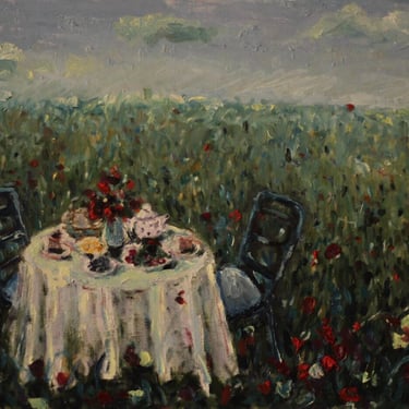 من وحي الطريق , رسمت عملاً تحضيرياً بالألوان الزيتية عندما عدت الى البيت , وعملاً اخر من وحي جولاتنا الصباحية تلك , أسميته : افطار لاثنين