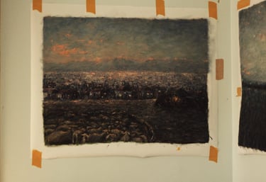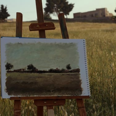 في العام الأول -2021- اعتمدت على نحو أساسي على الرسم المباشر للحقول ، ومن وحي الأعمال المباشرة أنتجت عدداً من الأعمال في مرسمي . بالطبع ثمة تحديات للرسم المباشر والحر في الطبيعة ، لكني من دون مبالغة لم أشعر بها ، فقد كانت كاللعب مع الطبيعة ، التغير المستمر لظروف الإضاءة , موضع وحدة الشمس ، بالإضافة لحركة الغيوم وشكل انعكاسها على الأرض وأمور أُخرى لا يمكن التنبؤ بها مسبقاً ، كل هذا يسهل التعامل معه مقارنة بأعمال ساعة الغروب أو ما بعدها بقليل ، والتي تعتمد على مزيج بقايا ضوء الشمس مع الإضاءة الصناعية للشوارع والبيوت ، كانت الأكثر تحدياً، كان لا بد من اختيار مشاهد بعناصر نمطية قابلة للتجريد من خلال اللون ، بالإضافة إلى باليت ألوان محدود جداً ، طبعاً العنصر الجمالي ومدى ملامسة المشهد إلى نفسي هو الأهم ، كل شيء قادر على أن يأتي تباعاً لذلك