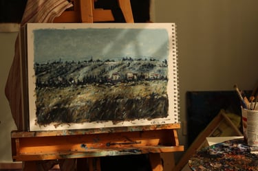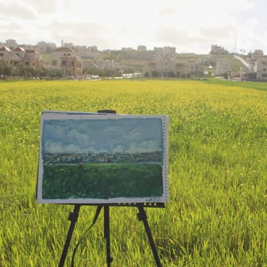 منذ عامين بدأتُ أولى جولاتي الفنية المتسلسلة لالتقاط مشاهد زيتية من مدينة إربد وضواحيها ، أتذكر ذلك اليوم بوضوح شديد ، كنت منهكة من التمارين الكثيفة الممتدة منذ عدة أشهرلإنجاز مشروع تخرجي من الجامعة على آلة البيانو، وعلى نحو يقبل التعميم لم أكن أفعل شيئاً في تلك الفترة سوى التمرن على أدائه منذ مطلع اليوم وحتى انقضاؤه ، كانت فترة مرهِقة وجميلة في الوقت ذاته ، لكنني شعرت في لحظات عديدة أن عليها أن تنقضي وبأفضل حال