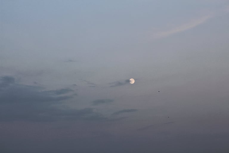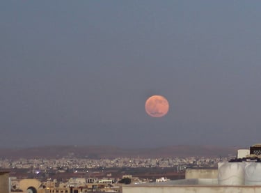 تتسمر ذاكرتي وتصبح ذكرياتي متينة عصية على النسيان حين ترتبط بصريًا بوجود القمر, اليوم كان بدرًا مكتملًا وقد صعد باكرًا قبل غروب الشمس من خلف بلدة بعيدة، كأنه يحاول أن يوقظ أحدًا ما، لربما أنا أقول في سري. حين جذبني ضوءه الوردي الخفيف إلى النافذة، راقبته من الواجهة الشرقية بينما كنت أوظب طاولة الطعام بعد وجبة الغداء المتأخرة, وفي رأسي تدور أصوات طيور الزرزور كأنها موسيقى خلفية تعبر فضاء المدينة وفضاء رأسي. التقطت صورًا للقمر، للمدينة، ولنا. هكذا يفعل القمر بي دائمًا.. يسرقني، نمضي الوقت معًا، ثم يعيدني برفق وبطء يليق بالدهشة.